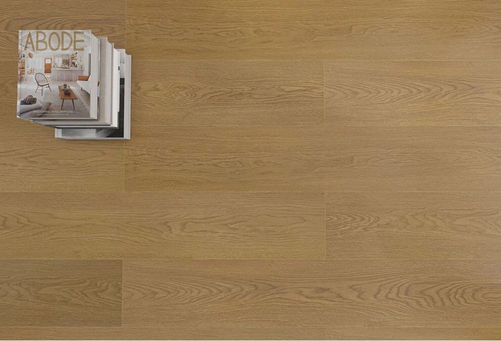 推荐三杉产品:可考虑三杉热康地板HS1517(淡淡的奶油色地板,环保等级HENF级,甜而不腻,在快节奏的生活里注入恬静与美好)