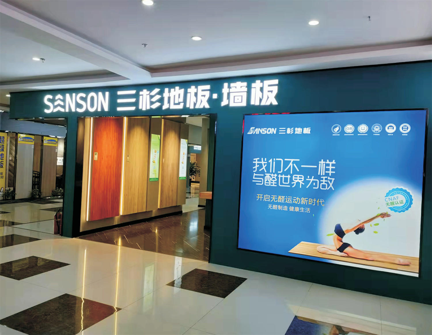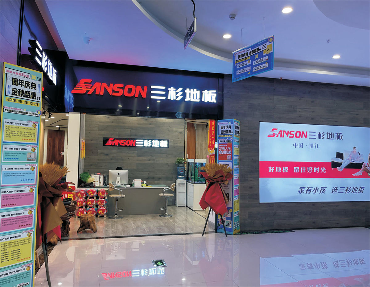 SANSON三杉,经过⼆⼗余载的稳定发展,在公司总部成⽴科研中⼼和建筑装饰研究院两⼤研发机构,拥有独⽴的地板⽣产、⻔业⽣产、定制柜体⽣产、墙板装饰板⽣产等⽣产线。SANSON三杉,通过ISO9001、IS014001、GB/T29490等多项管理体系认证,申请荣获国家知识产权局相关专利100余项,产品多达1000多种。在全国知名建材商城建⽴有数百家三杉品牌专卖店,凭借卓越的品质和⼴泛的市场认可,在⾏业内享有⾼度美誉,其市场占有量稳步增⻓,展现出强劲的市场竞争⼒。
